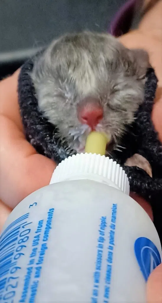 Delta & her baby Gamma. Delta is a 1-year-old female. Covered in different tones of brown stripes. Delta’s baby, Gamma, is a 10-day old female who is so far, all grey. Delta was dumped at a farm in the Melville, SK area during the end of her pregnancy. A couple took her in and while preparing her food, Delta gave birth to 3 kittens. Unfortunately, she lost 2. The couple then contacted Rebel Cat Rescue for help. They had to bottle feed the baby for a couple days because Delta was such a young mother, and after losing 2 babies, she was stressed and had a hard time producing milk. With some love and care both Delta and Gamma are doing much better and she’s successfully feeding her baby. Once Delta is spayed and Gamma gets older, both will be up for adoption! Rebel Cat Rescue is having a 50/50 draw in March, for more information contact: rebelcatrescue2@gmail.com Check them out on Facebook and Instagram.
