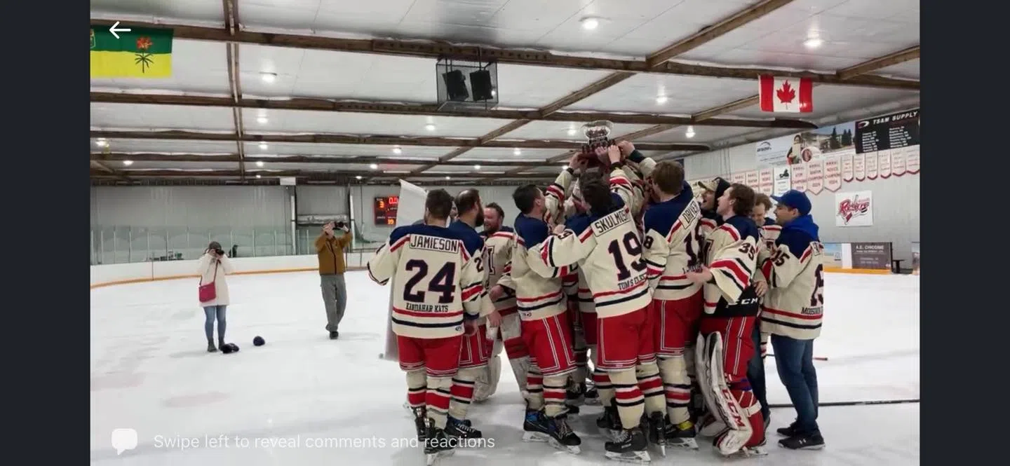 Josh Elmes powerplay goal with 5:28 remaining stood up to be the game winner to lead the Moosomin Rangers to a 5-3 road win over the defending champion Redvers Rockets to sweep their Best of 5 Finals series, 3-0.