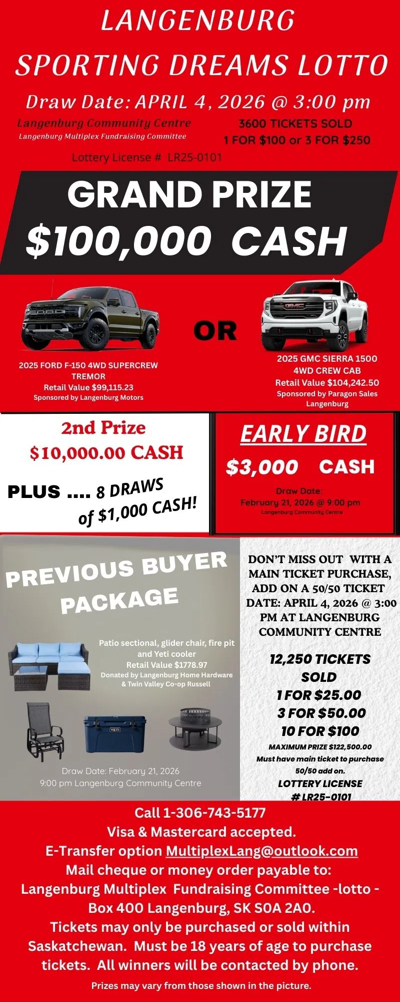 Of course, this is the second year of the Sporting Dreams Lotto, which is raising money to build a new Multiplex to serve residents of Langenburg and the surrounding area.